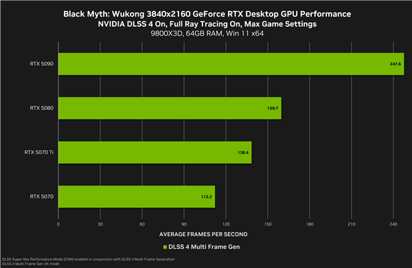 這一巨大性能飛躍讓GeForce RTX 5070玩家可暢享110 FPS,RTX 5070 Ti用戶達(dá)到130 FPS,RTX 5080所有者突破150 FPS,RTX 5090用戶更可飆至240 FPS。
