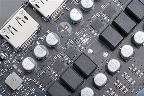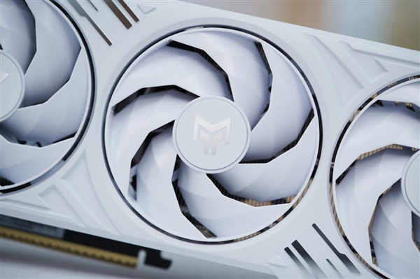 顯卡采用了新一代寒光星散熱系統,配備了3把直徑90mm二代霜環風扇,扇葉設計從上代的11扇葉改為7扇葉,并做了連葉設計。