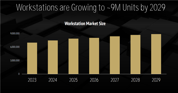 IDC數據顯示,2024年,全球工作站市場規模接近700萬臺,而預計到了2029年,將增長至約900萬臺。