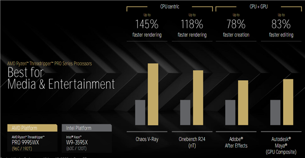 經過多年發展,AMD撕裂者系列已經得到了行業的普遍支持,各種專業軟件都做了非常好的優化適配,可充分發揮其多核心、大緩存、豐富I/O等諸多方面的獨特優勢。