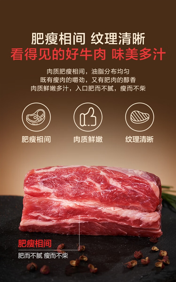 高蛋白低脂肪:肥瘦相間 → 肥而不膩瘦而不柴